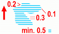 305 Преодолимая рекаПреодолимый река или канава шириной минимум 2 метра. Если ширина больше 5 метров, то объект показывается в масштабе карты. Цвет: голубой. |