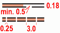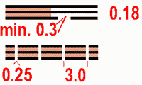 503 Узкое шоссеШоссе или асфальтированная дорожка, шириной 3 - 5 метров. Пространство между чёрными линиями заполняется коричневой точечной сеткой (50%). Реконструируемые и строящиеся дороги могут быть показаны прерывистой линией. Цвет: чёрный и коричневый 50% (60 линий/см). |