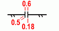 517 Линия электропередачи на высоких опорахРасстояние между линиями может показывать ширину ЛЭП. Поперечные штрихи показывают места опор. Цвет: чёрный. |